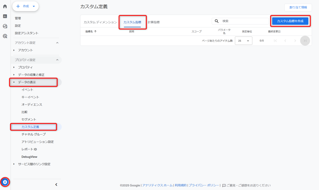 カスタム指標の作成
