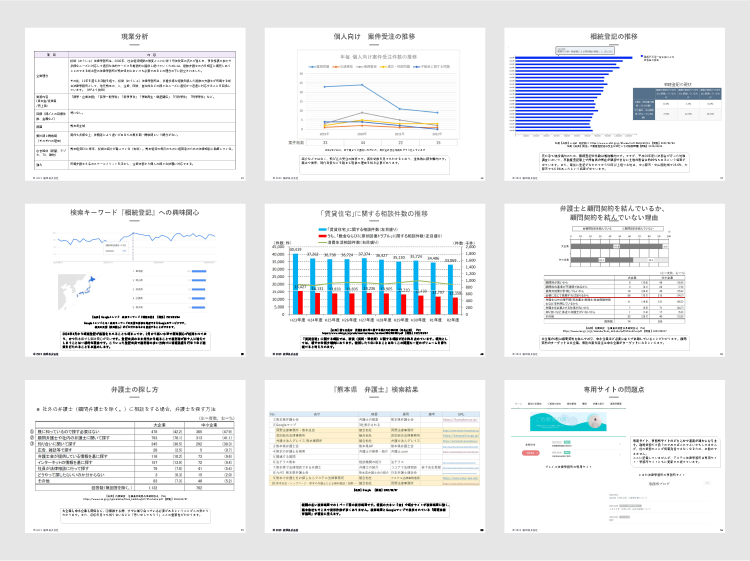 ワークショップで得られた結果を基に、下記内容のマーケティング戦略のご提案をいたします。詳しくは、上記選ばれる理由の『02確度の高いマーケティング戦略をご提案します』をご覧ください。 顧客インサイトシートを全く回収できなかった場合、ヒアリングさせていただいた顧客像とインターネット上のデータにより下記項目を導き出し戦略立案いたします。