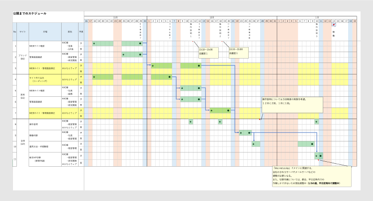 まずは初顔合わせということで、弊社の自社紹介からはじまり、大まかな制作工程の説明をさせていただき、依頼主さまの担当者はどなたか、ファイルの受け渡し(送受信)方法の確認などを行わせていただきます。 制作工程の中で発生する依頼主さまへのヒアリングや、制作物の確認作業など時間のかかることをお願いさせていただく工程があるため、スケジュールは依頼主さまの繁忙期なども考慮しながら柔軟に調整します。 公開後、依頼主さまたちで情報発信するとなったときに実際にそういったことができるのか、業務上のルール・社風・継続できる体制づくりなども確認させていただきます。マーケティング戦略のご提案時に、提案させていただく施策が実行可能かどうかを判断するために必要なご確認となります。
